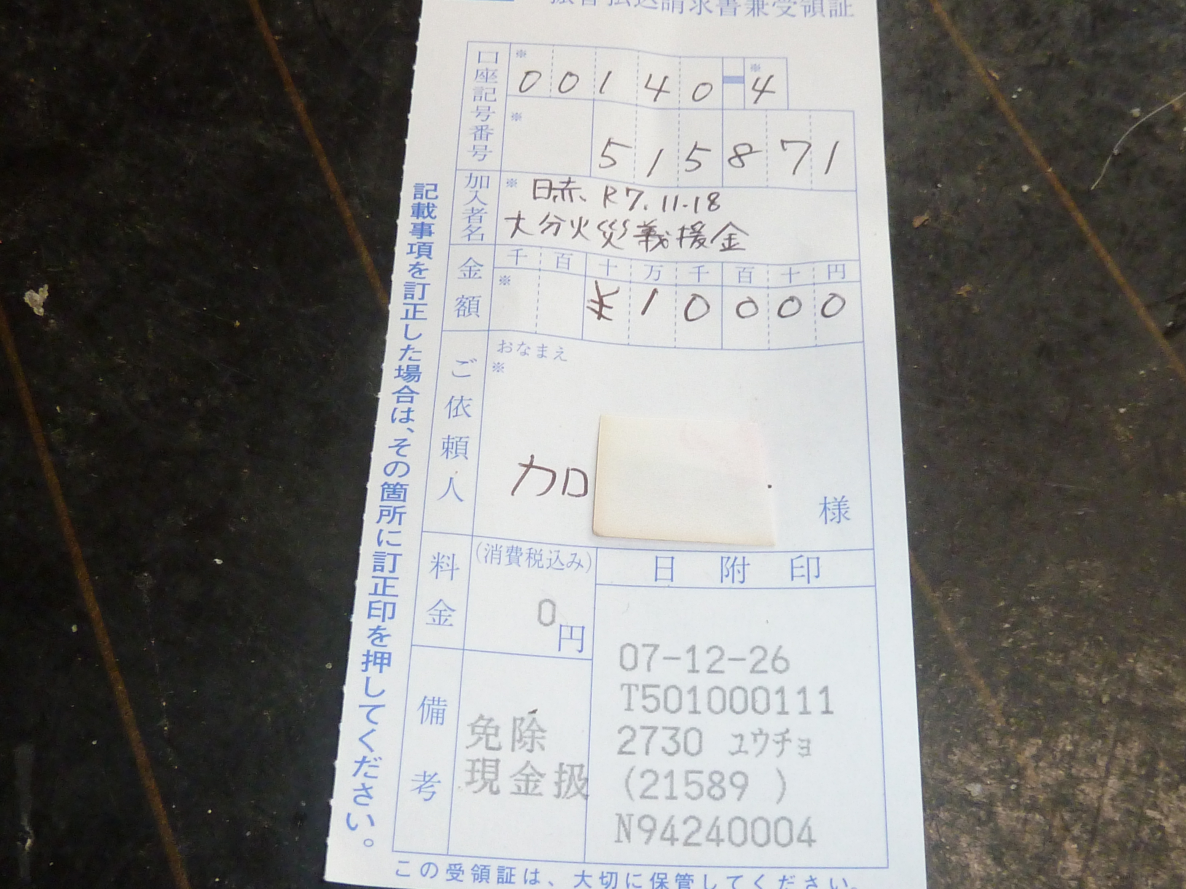 ついでと言っちゃ何ですが大分火災義援金も載せときます。